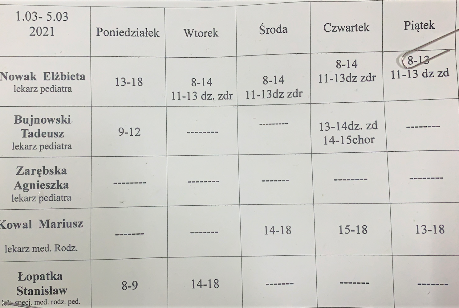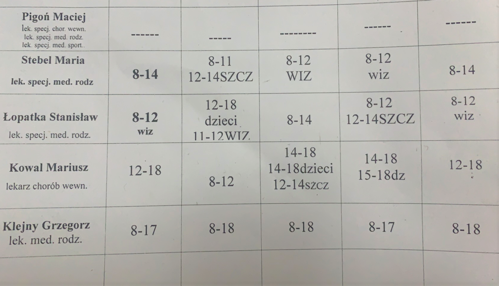 Grafiki przyjęć 01-05 marca – Przychodnia Medycyny Rodzinnej Widok
